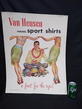 Large 28" Cardboard Sign 1950's Van Heusen Vanuana Hawaiian Shirt Advertising