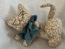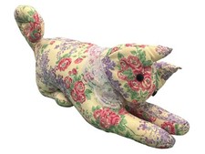 Fabric Cat Stuffed Doll Plush Pouncing Floral Country Chic Cottagecore Vintage
