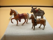Vintage Miniature Horse X2 And Donkey Mule Metal Toy Figures Japan