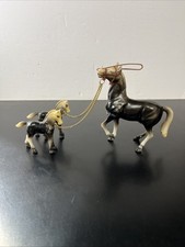 Vintage POT METAL HORSES Horse Painted Toy 2pcs Cowboy Western w/ Cork