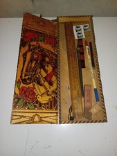 ANTIQUE Vintage Wood PYROGRAPHY Box Equestrian Lady And Horse C 1920