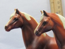 Vintage Plastic Horse lot of 2 brown White Collectible 7 x 5