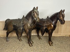 Rare Antique Leather Horses, Dark Brown With Saddles, 17 inches tall
