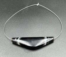 Antique Old striped Natural Black Agate Amulet Bead [1.7 x 3.1cm, 4gram]