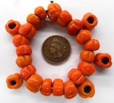 Antique Sherpa fake coral glass bead 15.7 x 11.7 mm artisan collectible superb