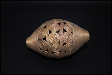Large Antique, Vintage Ornate Handcrafted African Brass Ovular “Peacock Bead”