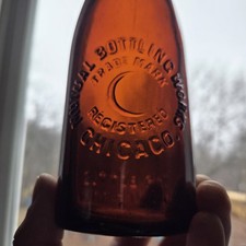 *Embossed Moon* Mutual Bottling Works Chicago Antique Amber Crown Beer Bottle