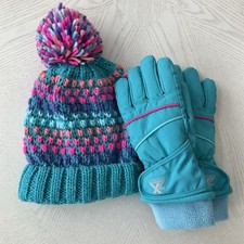 ZeroXposur Girl's Winter Beanie Pom-Pom Hat & Snow Gloves Set Blue Pink S/M