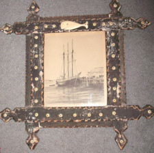 Rare Antique Nautical Folk Art Scrimshaw Picture Frame Lined in Bone dated 1935