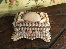 Antique 19c. Seashell Shell Jewelry Box 9" X 5 5/8" X 4 3/4"