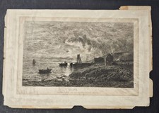 Antique Late 1800s Etching by Karl Ernst Forberg "Moonrise on the Swedish Coast"