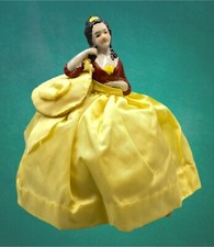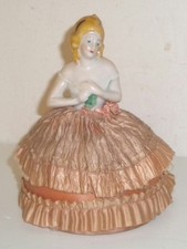 Vintage Bisque Porcelain Pin Cushion Half DOLL Figurine Oversized Satin Skirt