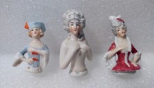 ANTIQUE THREE VICTORIAN HALF PINCUSHION DOLLS BISQUE & PORCELAIN W/ HATPIN