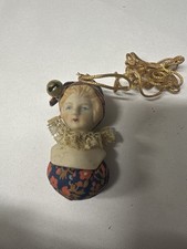 Antique Bisque Head Pin Cushion Doll Clown with Antique Pins