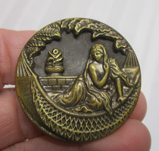 ANTIQUE VICTORIAN PICTURE BUTTON ~ CLEOPATRA in HAMMOCK BY WALL & URN