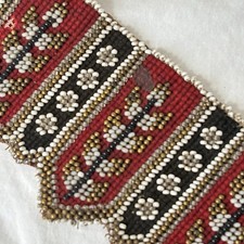 Antique Victorian Beaded And Needlepoint Appliqué Trim 29” Long 3” Wide
