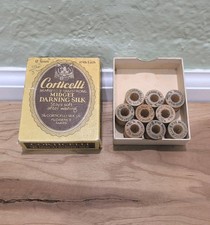 Antique Corticelli "Midget Darning Silk" Box & Nine Wooden Spools (Spools Only)