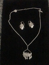 Antique 800 Silver Turkish Arabic Moon & Star Chiming Bell Bracelet Earrings Set