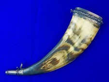 Antique 19 Century Victorian Scotland Scottish Cow Horn & Silver Powder Flask