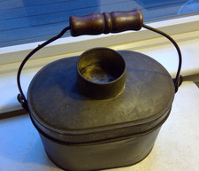 Vintage Antique 1920s Coal Miners Metal Lunchbox Lunch Pail Wood Handle