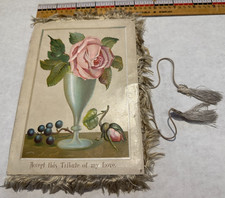 Rare 1880s Antique Victorian Silk Fringe Christmas Card