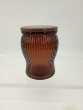 Vintage Brown Glass Humidor Pipe Tobacco Jar w/ Lid 1950s Dun Rite Wood Nov