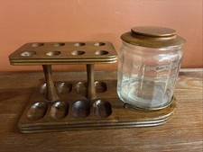 VTG Wooden Pipe Rack Tobacco Smoking Stand Glass Humidor Jar Holds 10 Pipes