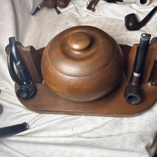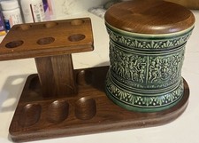 Vintage Wooden Pipe Stand With Central Tobacco Jar (Humidor)