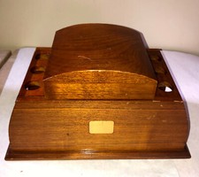 VINTAGE WALNUT 6 PIPE HOLDER AND HUMIDOR -TOBACCO HOLDER