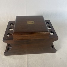 VTG Wooden Smoking Pipe Stand With Humidor 12” Long