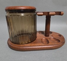 Vintage Decatur Industries Walnut 4 Pipe Stand w/ Glass Tobacco Jar Humidor