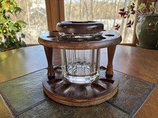 Vintage Fairfax 4 Pipe Wooden Stand With Heavy Glass Humidor Tobacco