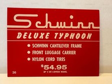 NOS Schwinn DELUXE TYPHOON bicycle DEALER advertising PRICE CARD sign 4x6 #26