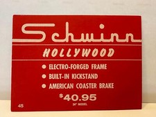 NOS Schwinn HOLLYWOOD bicycle DEALER advertising PRICE tag CARD sign 4x6 #45
