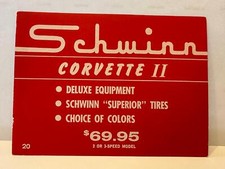 NOS Schwinn CORVETTE II bicycle DEALER advertising PRICE CARD sign 4x6 #19