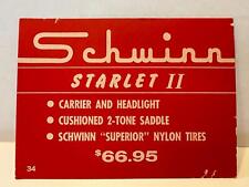 NOS Schwinn STARLET II bicycle DEALER advertising PRICE tag CARD sign 4x6 #34