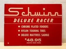 NOS Schwinn DELUXE RACER bicycle DEALER advertising PRICE tag CARD sign 4x6 #9
