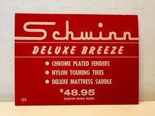 NOS Schwinn DELUXE BREEZE bicycle DEALER advertising PRICE tag CARD sign 4x6 #30