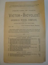Antique 1885 VICTOR BICYCLES PRICE LIST, Penny Farthing, High Wheeler