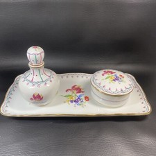Antique 3pc German Pefume & Powder Box Vanity Set Hand Painted Floral w Gold EVC