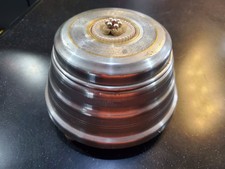 Antique 1939 Powder Puff Music Box Works Aluminum Metal ART DECO Bakelite Feet