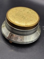 Vintage Victorian Aluminum Footed Vanity Powder Puff Music Trinket Box S1