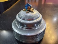 Vintage Aluminum 1940's Vanity Powder Puff Music Trinket Box Works Great Boudoir