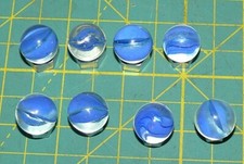 8 Vintage Toy Marbles Cobalt Blue Cat's Eye Ribbon Twist Clear Glass Marbles Set