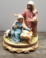 Vintage Nativity Scene Music box Statue 6" Tall Jesus mother Mary