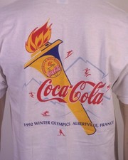 vintage 90s Velva Sheen 1992 Coca Cola Winter Olympics T-Shirt Coke Pocket USA L