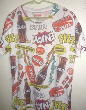 Vintage Large Retro '80s Cherry Coke Coca-Cola Pop Art Shirt Comic Style RARE!🥤