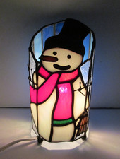 Vintage 2002 Tiffany Style Stained Glass 9.25" CHRISTMAS SNOWMAN UPLIGHT/LIGHT