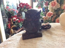 Unused Tiffany Style Mosiac Stained Glass OWL Night Light Lamp 6 1/2" Tall