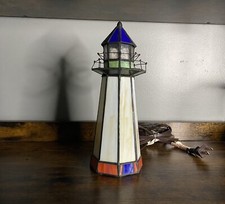 Vintage Multi Colored Stained Glass Lighthouse Lamp Night Light Tiffany Style